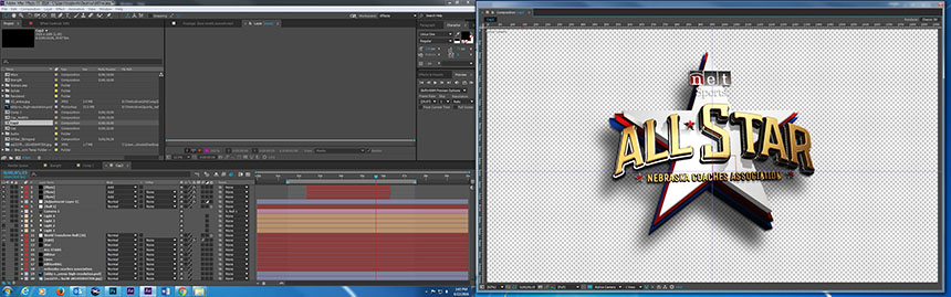 The final 3D model was used for a title graphic, a corner McGurkin, a replay wipe, one generic capper to break and a specific capper for each volleyball/basketball and softball.